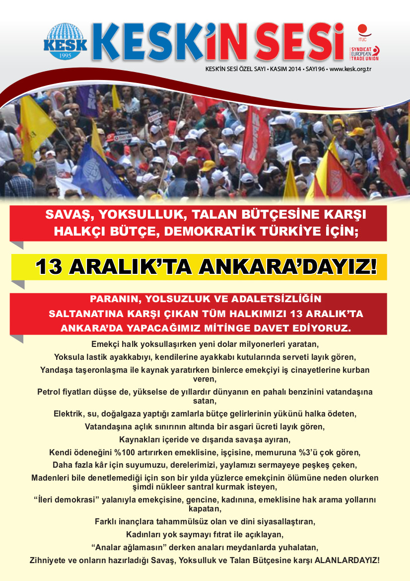 Ara 10, 2014 sendikalbirlik HABERLER, KESK'TEN, MANŞET 0